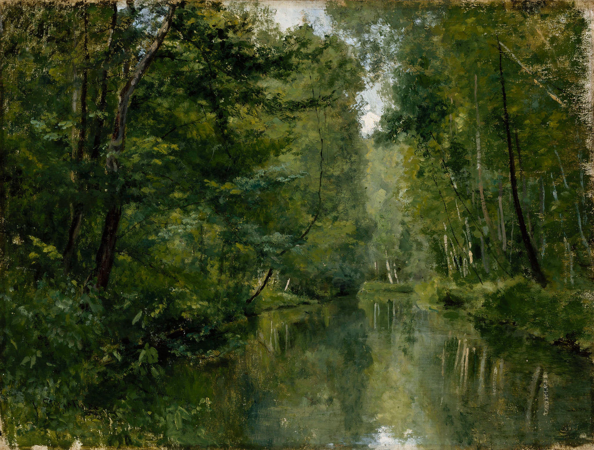 Poel Met Bomen en Weiland